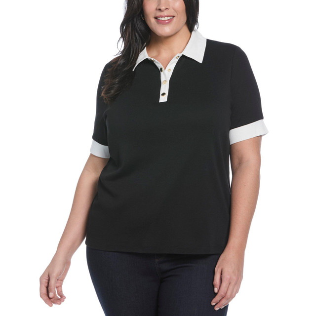 From work to casual outings, this Womens Rafaella® top takes you through the day in comfort and style. This elbow-sleeve shirt has a polished and timeless look that's never out of place. The classic design makes it easy to pair with a range of bottoms, making this women's short-sleeved shirt a versatile addition to your everyday rotation.