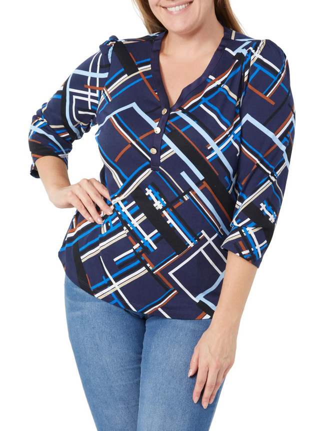 Rafaella Womens 3/4 Sleeve Geometric Gold Button Top