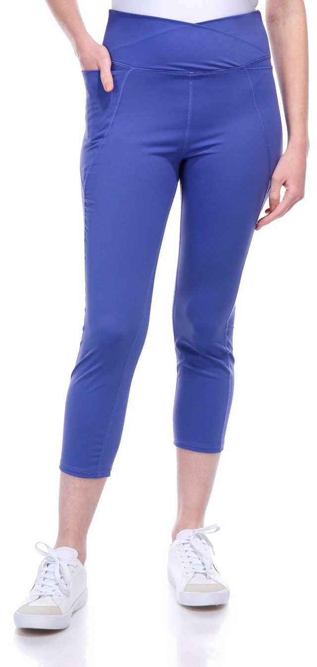 Experience the perfect blend of style and functionality with these Stretch Capris. Designed with double side pockets, these capris offer convenient storage for your essentials while maintaining a sleek look. The innovative cooling technology ensures you stay comfortable and fresh, even on the warmest days. Inseam measures approximately 24 in. Fabrication 77% nylon, 23% spandex.