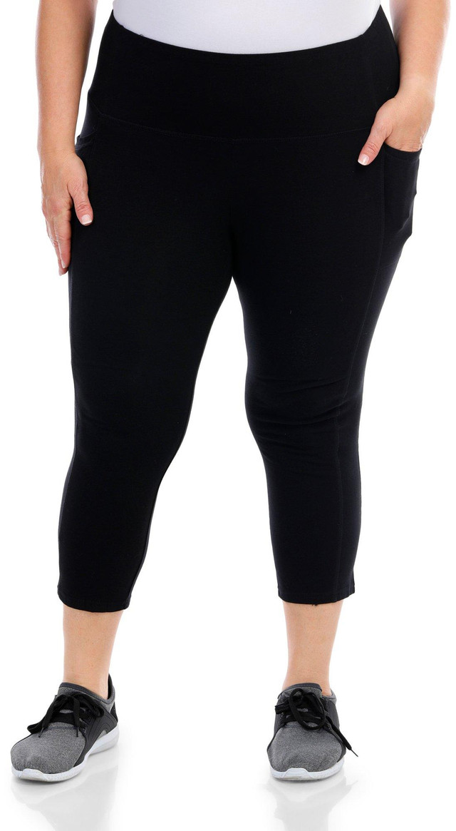 Enhance your workout wardrobe with these Active Capris. These capris feature a sleek solid color and convenient double side pockets, perfect for storing your essentials while on the go. The soft, stretchy fabric ensures a comfortable fit and allows for easy movement, making them ideal for any activity, from yoga to running errands. Fabrication is 55% cotton, 37% polyester, 8% spandex.