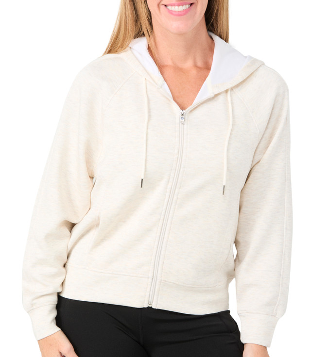 Elevate your activewear with this Active Scuba Jacket. Crafted from soft scuba fabric, this jacket offers unparalleled comfort and style. The full-zipped jacket features double front pockets, perfect for keeping essentials close. Fabrication is 45% polyester, 50% rayon, 5% spandex.