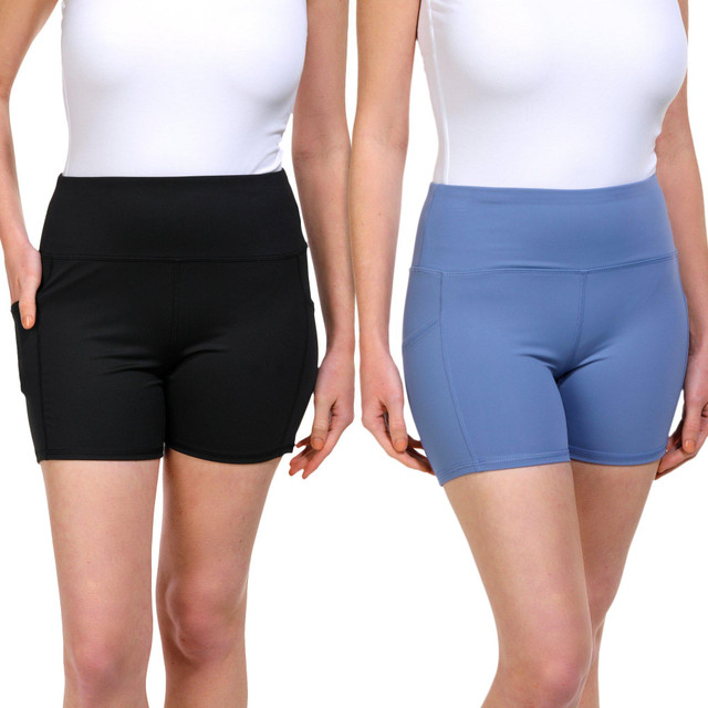 Stay comfy and confident in the Women's Active Solid 2-Pack Super Soft Biker Shorts. Made with ultra-soft, stretchy fabric and a flattering 5-inch inseam, these shorts move with you through workouts or daily errands. A must-have for active days, lounging, or layering on the go. FABRIC: 78% Polyester, 22% Spandex.