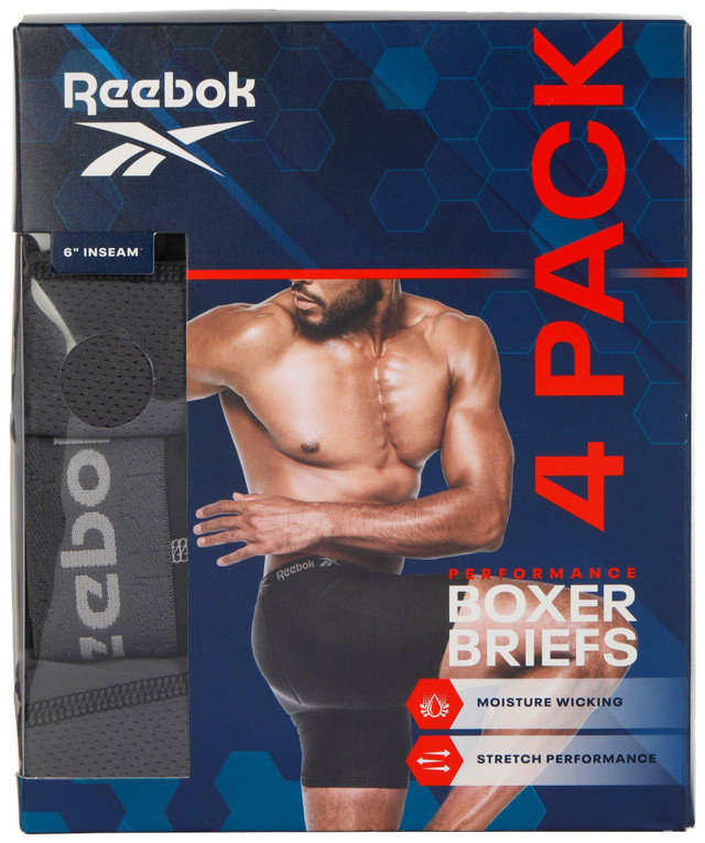 Stay dry, cool, and comfortable all day with this 4-pack of mens boxer briefs. Featuring breathable, moisture-wicking fabric and a tag-free design, these durable boxers offer the perfect fit that wont ride upideal for workouts or everyday wear. Fabrication: 100% polyester.