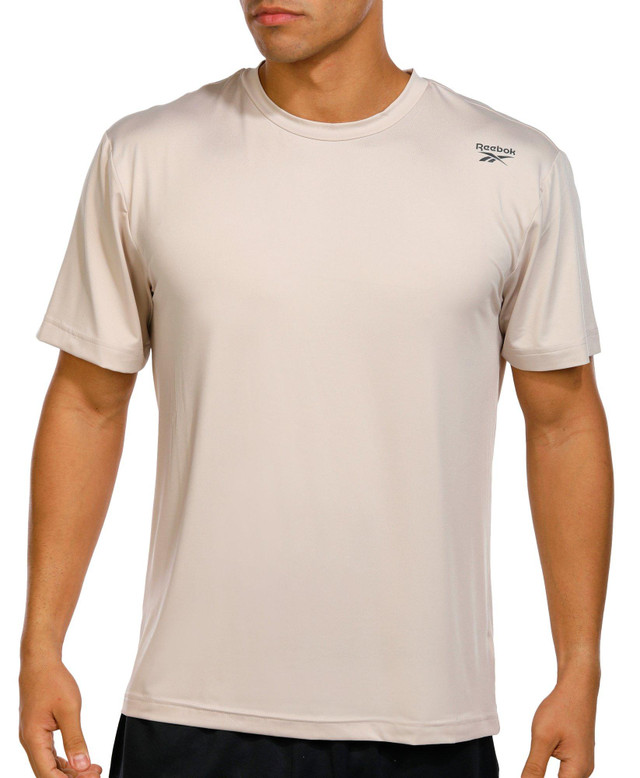This active t-shirt features a sleek design with performance stretch for ease of movement during athletic activities. Made from a smooth blend of polyester and spandex, it offers comfort and flexibility for workouts or casual wear.