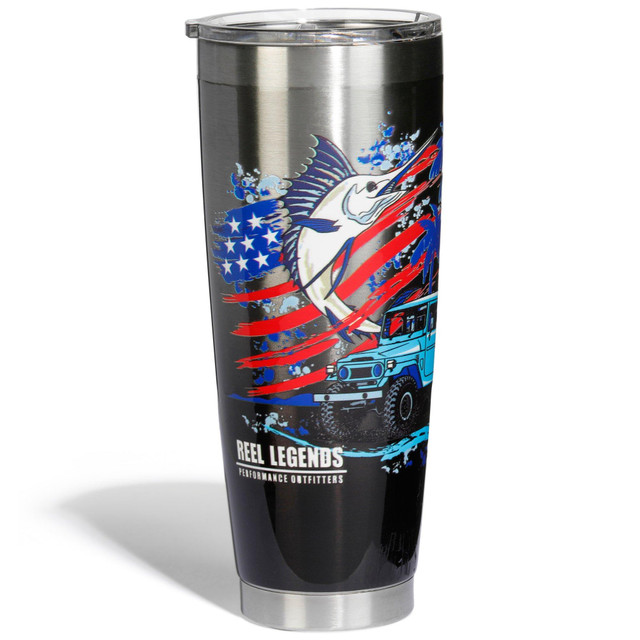 Celebrate in style with this Americana-themed stainless steel tumbler! Designed with double-wall insulation to keep drinks hot or cold for hours, this BPA-free tumbler features a sweat-free exterior and a secure lid for on-the-go convenience. With bold patriotic prints and durable construction, its the perfect companion for summer adventures, road trips, or backyard BBQs. Capacity is 30 FL. OZ.