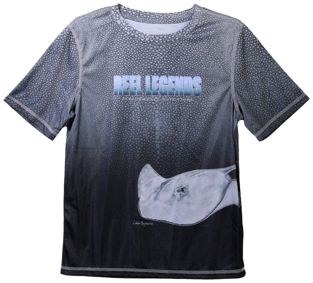 Reel Legends apparel is built for any land or sea adventure! This Bealls exclusive performance t-shirt features a bold shark design on a black backdrop, combining style with functionality. Designed with moisture-wicking technology, quick-dry properties, and UPF 30 sun protection, it keeps you cool and protected. The classic crew neck and short sleeves ensure all-day comfort, while the 100% polyester fabrication offers durability. Recommended as an effective UV protectant only for covered areas.
