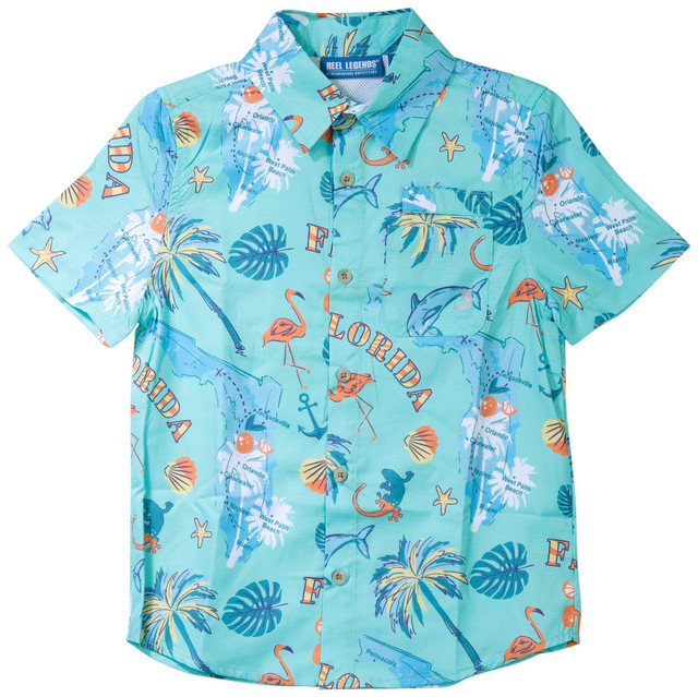 Reel Legends delivers the perfect blend of style and performance with this lightweight button-down shirt. Designed for tropical vibes, it features a vibrant Florida-inspired print and a vented back with breathable mesh for maximum airflow. Whether on the water or exploring the outdoors, this shirt keeps you cool and comfortable while embracing the laid-back coastal lifestyle.