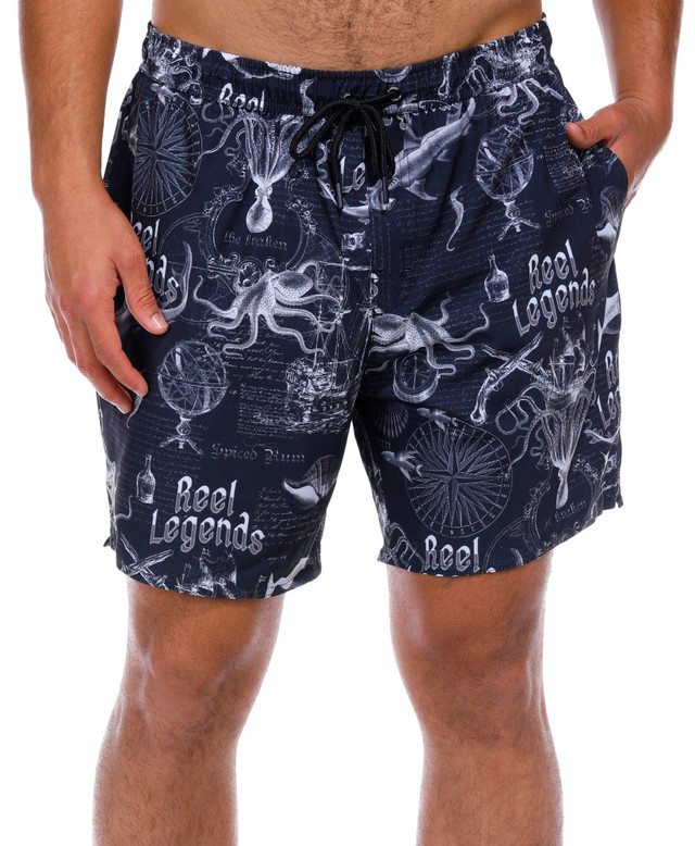 Stay protected and stylish with these volley swim trunks, featuring built-in sun protection and a drawstring waist for a perfect fit. The built-in liner ensures comfort and support, making these trunks ideal for active days at the beach or pool. Crafted from high-quality materials, they offer both durability and a sleek look. Inseam measures approximately 7 in. Fabrication is 92% polyester, 8% spandex.