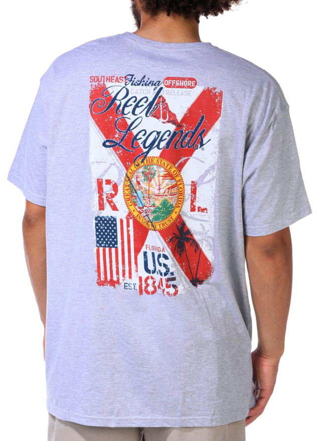 Show your state pride with the Men's Florida Flag T-Shirt. Featuring a crew neckline and short sleeves, this tee is styled with brand script on the chest corner and a bold Florida Flag graphic on the back. Fabrication 90% cotton, 10% polyester
