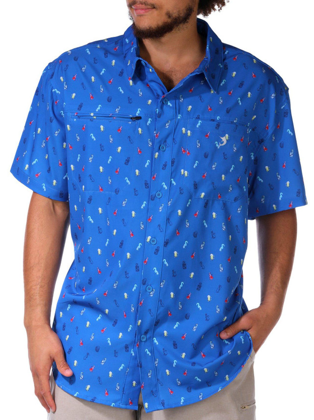 Made from a premium, lightweight fabric, it offers excellent breathability and moisture-wicking properties to keep you dry and fresh. The classic button-down design adds a touch of sophistication, making it suitable for both casual and semi-formal occasions. Whether you are at the office, out for a casual dinner, or enjoying a weekend adventure, the Men's HEIQ Hybrid Short Sleeve Button Down Shirt ensures you look and feel your best. Fabrication is 88% polyester and 12% spandex