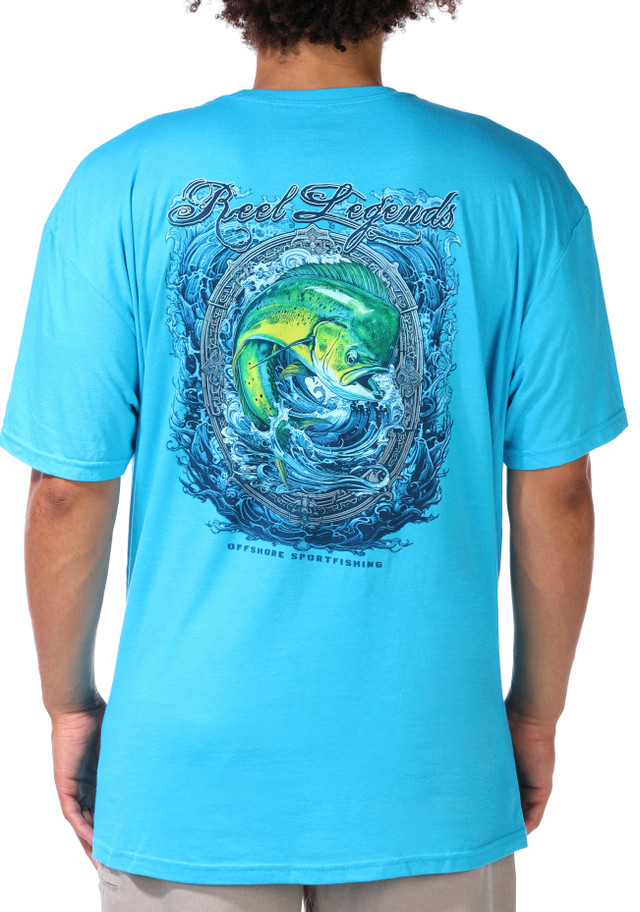 Reel in bold style with the Men's Ocean Mahi T-Shirt. Featuring a crew neckline and short sleeves, this tee is finished with brand script on the chest corner and a vibrant ocean mahi graphic on the back. Fabrication 60% cotton, 40% polyester