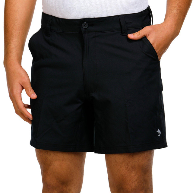 A perfect blend of style and performance. These shorts feature a solid color and are made from a polyester/spandex blend for comfort and flexibility. They offer UPF 50 protection, moisture-wicking, and quick-dry properties to keep you cool and dry. With side slip pockets, back pockets, and a button zip fly closure, these shorts are both practical and stylish. The 7-inch inseam provides a modern fit, ideal for any activity. Fabrication 90% polyester, 10% spandex.