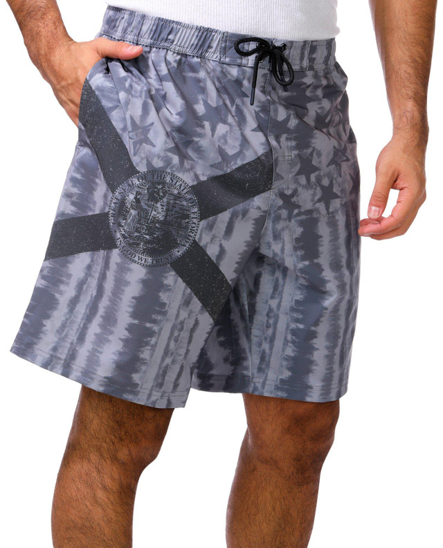 Show your state pride with the Men's 9 inch E-Board Florida Flag Swim Shorts. Featuring a bold U.S. flag design with a Florida logo, these shorts include a mesh inner lining, side seam and back pocket, UPF 30 protection, and moisture-wicking fabric.