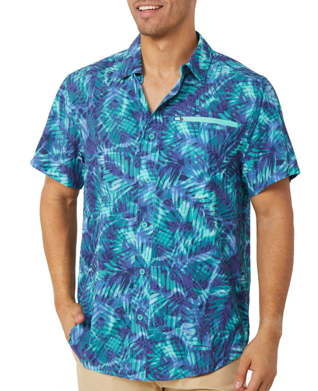 Add a splash of island style to your wardrobe with this Buttoned Print Top. Made from quick-dry, breathable fabric, it offers all-day comfort whether you're poolside or on the go. The bold tropical print brings a laid-back, vacation-ready vibe to any look. Fabrication 86% polyester 14% spandex.