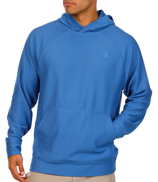 Stay comfortable in the Men's Waffle Hoodie. Made from breathable fabric, it features a trendy waffle texture and a hooded neckline with long sleeves. The embroidered logo accent on the chest adds a stylish, laid-back vibe. Fabrication is 70% polyester, 25% rayon, 5% spandex.