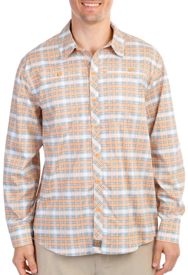 Elevate your outdoor adventures with the Reel Legends Terrain Button Down Long Sleeve Shirt. Designed for the rugged explorer, this shirt features double buttoned chest pockets for secure storage, built in sun-protection, snag-resistant fabric for durability, and strategic venting to keep you cool. The built-in sunglass cleaner ensures clear vision, while pinned rolled cuffs offer versatile styling. Fabrication is 75% polyester, 22% cotton, and 3% spandex.