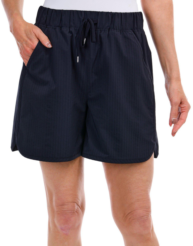 The Women's Delphin Shorts are designed for both comfort and performance. Featuring a drawstring waistband for a customizable fit, these shorts are made from 88% polyester and 12% spandex for added flexibility. With front slip pockets, a back zip pocket, moisture-wicking properties, and UPF 50 sun protection, they are perfect for outdoor activities and casual wear. The 5-inch inseam ensures a comfortable fit, keeping you cool, dry, and protected in these versatile shorts.