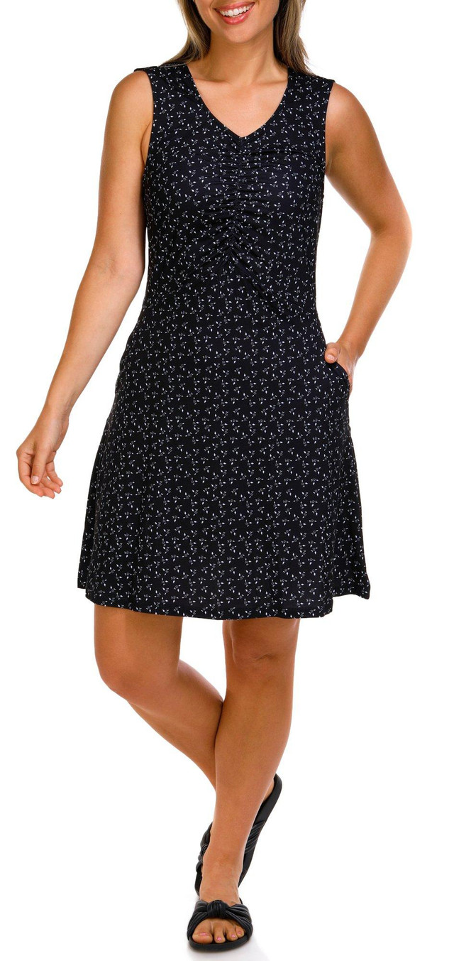 Stay cool and active in this Women's Sleeveless Knit Dress, crafted from a stretchy polyester-spandex blend. Featuring a subtle print, V-neckline, and sleeveless design, it offers UPF 50+ sun protection, quick-dry performance, moisture-wicking, and cooling fabricperfect for warm days on the move.
