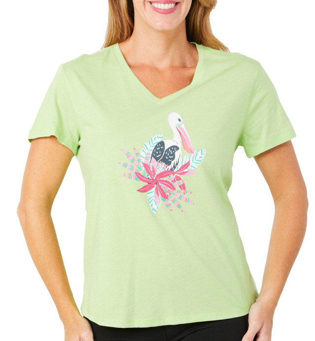 Take flight in effortless style with this Women's V-Neck T-Shirt, featuring soft short sleeves, a flattering v-neckline, and a bold pelican graphic that captures coastal charm. Perfect for casual days or seaside strolls.