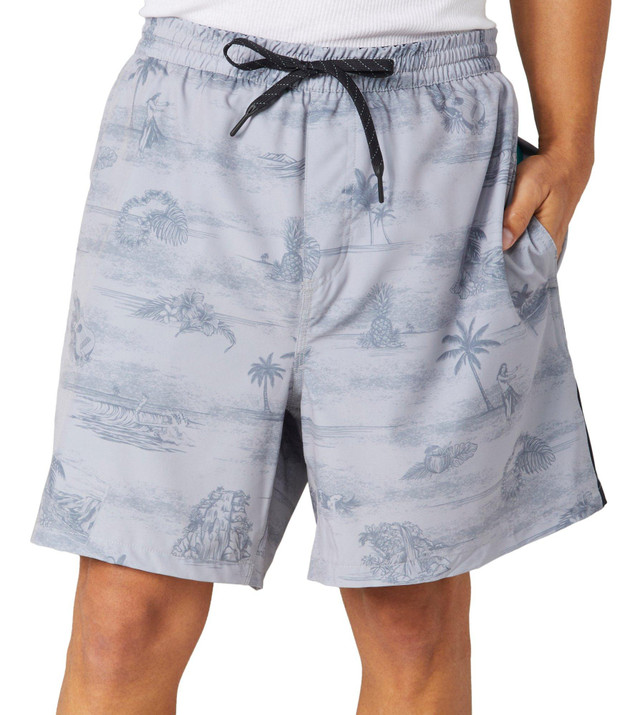 The Reel Life Mens Alloy Aloha 6 in. Vortex Swim Trunk is your go to trunk for hours in the water and in the warm sun. This relaxed classic fit with a 6 inch inseam and quick dry fabric is perfect for any beach or pool day activity, whether you're in or out of the water. Features two side pockets and one back pocket, a 6 inch inseam, a comfort liner, and sun protection. The waistband is elastic and has a drawstring for maximum comfort. 92% polyester and 8% spandex.
