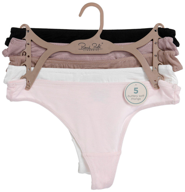This set includes five thong panties made from a silky-soft blend of 95% viscose from bamboo and 5% spandex for a smooth, flexible fit. Each pair comes in a mix of colors for everyday variety. Designed for breathable comfort and minimal lines. Hand wash and tumble dry recommended. Perfect for daily wear.