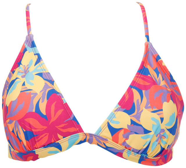 This juniors bikini top features a cross back design for secure fit and style. A floral print adds a fresh playful touch, making it a fun choice for beach days and poolside lounging. Fabrication is 84% polyester and 16% elastane.