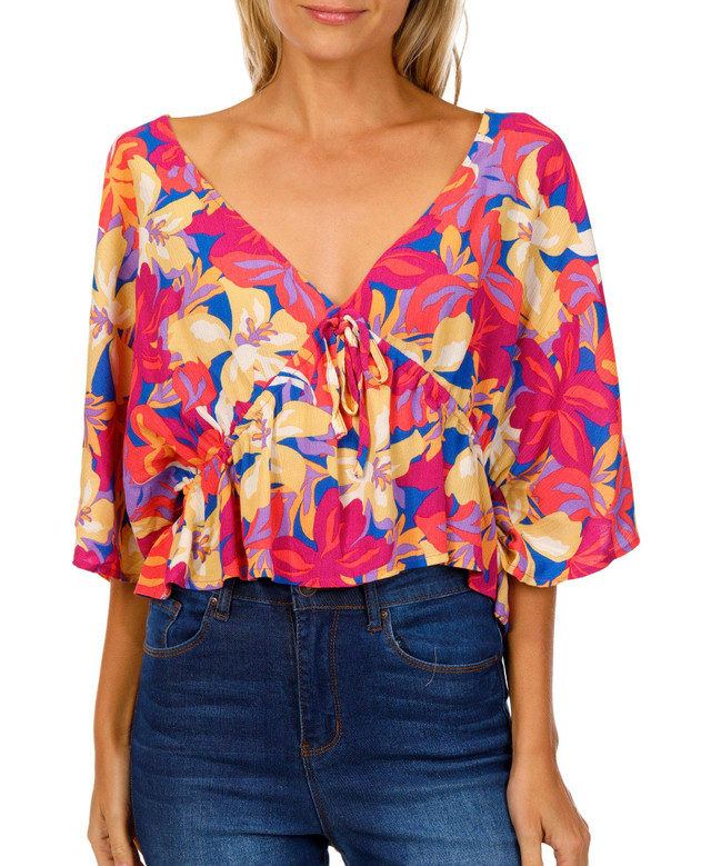 The Es Vedra Summer Top is your go-to for effortless summer style. Made from soft crinkle fabric, this top features a flattering standard fit and a tie front detail that gives it a beach-ready vibe. The softener wash adds a cozy, lived-in feel, perfect for those long, sunny days. Fabrication 100% viscose