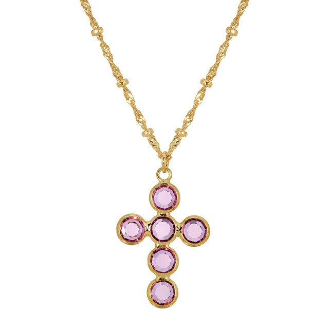 Blending simplicity with modern elegance, this crystal cross necklace features round colored crystals set on a gold-tone adjustable chain. Perfect for everyday wear or holiday occasions, it serves as a source of inspiration and makes an ideal gift. Its versatile design ensures it complements any outfit, adding a touch of sophistication and spiritual charm. This necklace is a timeless piece that will be cherished in any jewelry collection. Length 16 in., width 20mm.