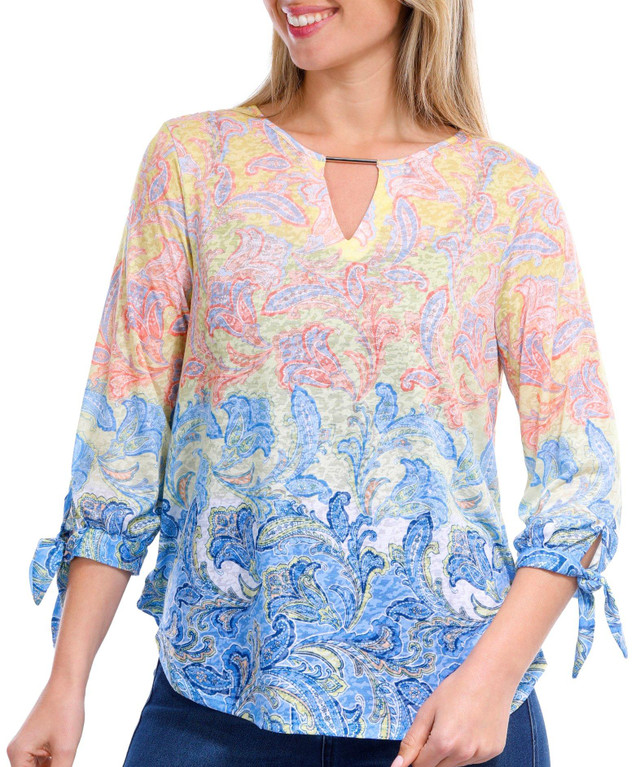 The Petite 3/4 Sleeve Printed Top offers a stylish and comfortable fit for any occasion. Made from a soft blend of 70% polyester and 30% rayon, it provides a breathable and lightweight feel. The 3/4 sleeves add a versatile touch, while the vibrant print adds personality to your look. With a 23-inch length, this top is perfect for casual outings or layering with your favorite pieces.