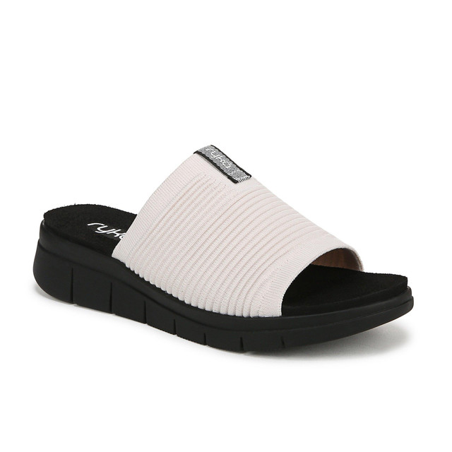 Slip into a breezy style with the Epic wedge sandals from Ryka. This pair takes inspiration from a classic slide style, featuring a classic thick ribbed band strap and a slight wedge heel.