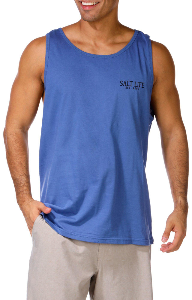 Show off your patriotic surf style with our Men's Americana Surf Board Tank Top. Featuring a crew neckline, bold Americana surfboard graphic on the back, and branded script on the chest, this tank is perfect for sunny days and coastal vibes. Fabrication 100% cotton