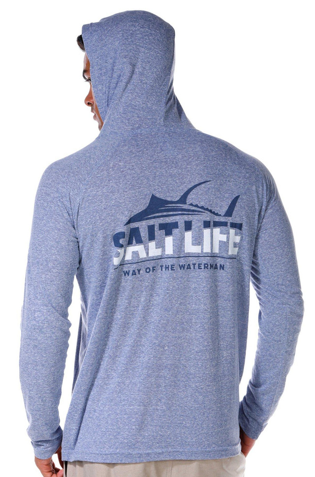 Stay ready for anything in the Men's Heathered On The Move Long Sleeve Hoodie. Made from a soft, breathable blend of cotton, polyester, and rayon, it offers lightweight comfort with a casual edge. Featuring a logo script on the back, it's perfect for layering on cool, active days.