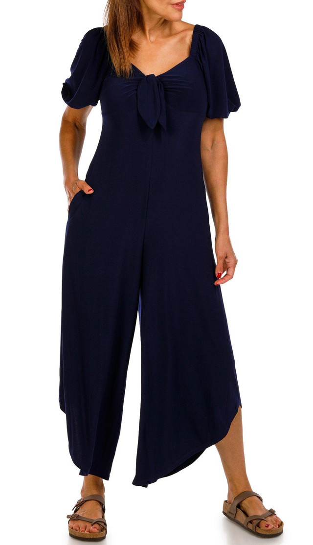 Step into effortless elegance with the Short Sleeve Sweetheart Neck Jumpsuit, crafted from a soft, stretchy blend of polyester and spandex. Featuring a flattering sweetheart neckline, short sleeves, and a sleek solid color, this versatile piece offers all-day comfort with a polished look, perfect for brunch dates, evening events, or wherever the day takes you. Fabrication is 94% polyester, 6% spandex.