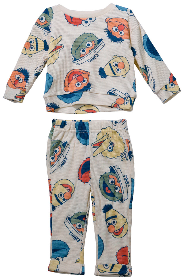 Bring playful comfort to his day with this baby boys 2-piece Sesame Street waffle pant set. The long sleeve top and matching bottoms are made from a soft blend of 60% cotton and 40% polyester, perfect for all-day wear. Featuring fun character details and a cozy waffle texture. Machine wash and tumble dry for easy care. Great for lounging, playtime, or everyday adventures.