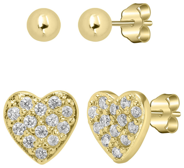 The Signature 2-Pc. Ball & Cubic Zirconia Heart Stud Earrings feature a charming heart-shaped design accented with sparkling Cubic Zirconia stones. The combination of the heart motif and the smooth ball design adds a touch of elegance and sweetness to these stud earrings.
