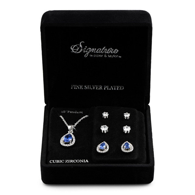 Signature CZ Blue Tear Drop Necklace & 3-Pc. Earrings Set