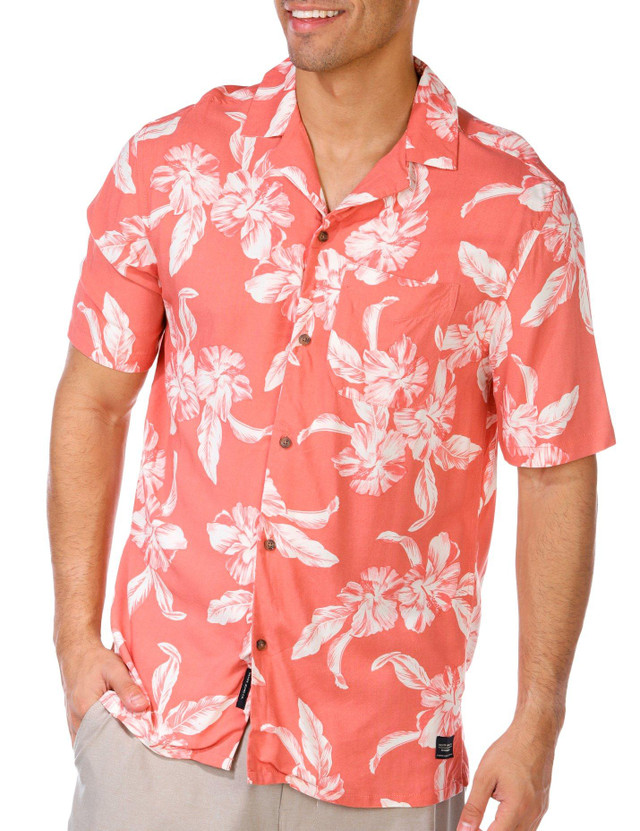 Stay sharp and sun safe in the Short Sleeve Shirt, designed for style and performance. Featuring a vibrant print pattern, convenient front pocket and classic buttoned front, its built with UV protection and quick dry fabric to keep you cool, dry, and protected all day long. Fabrication is 100% rayon.