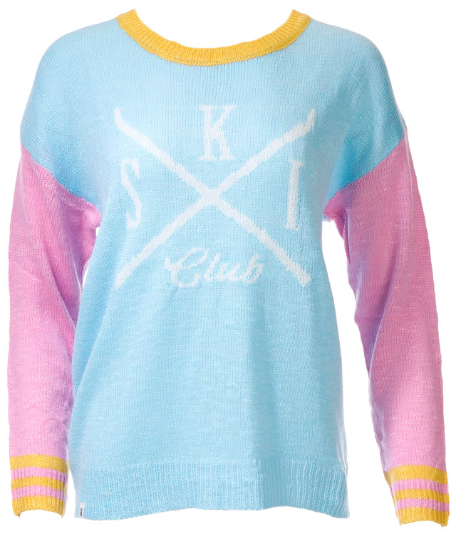 This knit long sleeve sweater features a Ski Club logo and a color block design for a bold touch. Soft and comfortable, it's a standout piece for cooler days and casual layering.