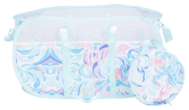 This Watercolor Pop Up Trunk Tote is great for any beach or pool day to keep your things organized and in one place. It is perfect to keep in the trunk of your car, or in your bag while it is collapsed. It easily twists down and fits into a round storage pouch. Pack your towels, sunscreen, and all other beach accessories in this spacious tote. Made of 100% Nylon.