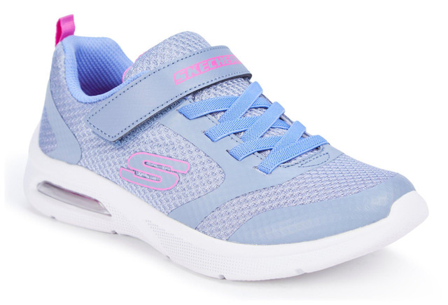 Add some extra comfy cushioning to a sporty style with the Microspec Max - Racer Gal. This pull-on features a mesh upper with stretch laces, instep strap and a visible Skech-Air® airbag midsole.