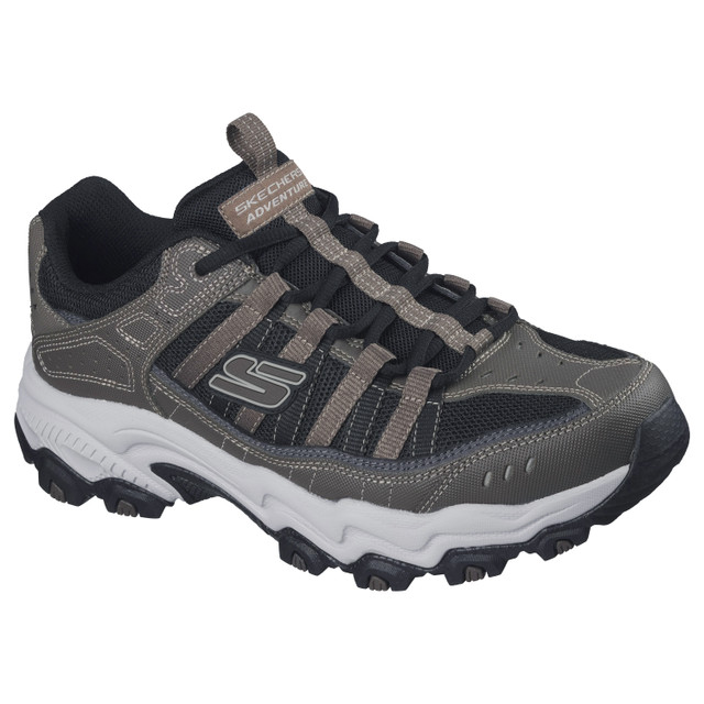 Explore wild terrain in comfort with Skechers After Burn M.Fit 2.0. This lace-up outdoor trail design features a leather, synthetic and mesh upper with a cushioned Skechers Memory Foam insole and Goodyear® Rubber Outsole.