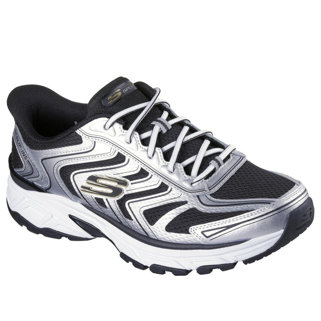 Step into sporty style and supreme comfort with Skechers Hands Free Slip-ins®: Stamina Sport. Designed with our Heel Pillow®, this slip-on style features a mesh upper with leather and synthetic overlays, adjustable laces, and a cushioned Skechers Air-Cooled Memory Foam® insole. Features mesh upper with leather and synthetic overlays, slip-on jogger with adjustable laces and flexible traction outsole.