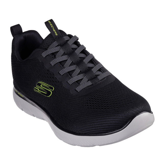 Happier feet are just a step away with the Summits - Eckler. This vegan active design features an engineered mesh upper with stretch laces and a Skechers Memory Foam cushioned comfort insole. Crafted with 100% vegan materials.