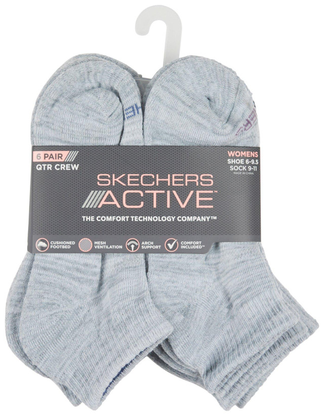 These Women's 6-Pack Quarter Crew Socks are made from a soft and durable polyester-spandex blend, offering the perfect balance of comfort, stretch, and flexibility. Designed to stay in place, these socks provide a secure fit while ensuring breathability and moisture-wicking properties to keep your feet fresh all day. The quarter crew design offers extra ankle coverage for added support and comfort. Ideal for everyday wear, these socks deliver durability and style for any activity.