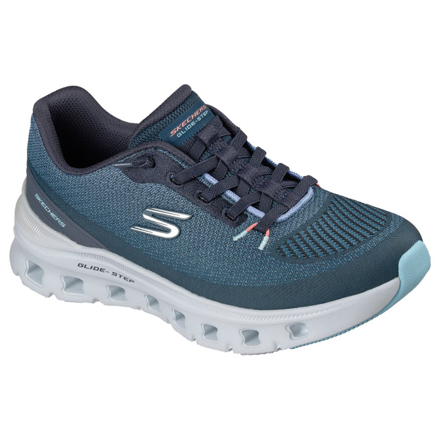 Take each stride with lasting comfort in the Skechers Glide-step Pro - Soft Mirage shoes. Designed with a jacquard mesh upper with tied-off stretch laces, a Skechers Air-Cooled Memory Foam insole, and a geometric Glide-Step midsole. Features air-cooled memory foam cushioned comfort insole, no tie fit (laces never come undone), machine washable, round toe silhousette and flexible traction rubber outsole.