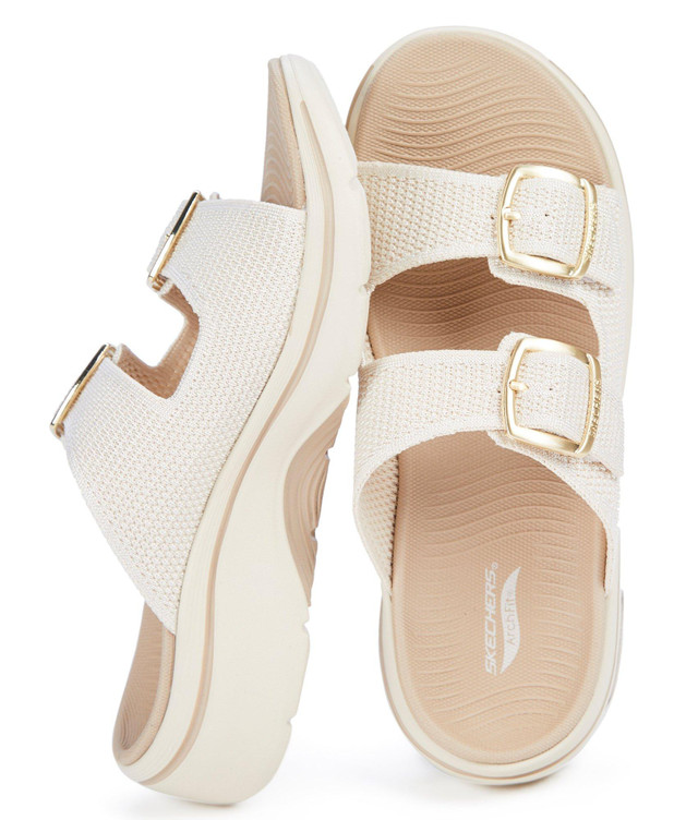 Experience ultimate comfort and support wearing Skechers GO WALK® Arch Fit® 2.0 Sandal - Chloe. This Arch Fit® slide sandal has been granted the APMA Seal of Acceptance and features a dual-band Quick Dry knit upper with buckles, contoured Goga Mat® footbed, ULTRA GO® cushioning, and Comfort Pillar Technology® for added support.