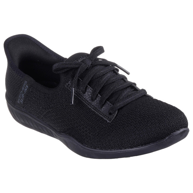 Step into effortless comfort with these Skechers Slip-ins®: Newbury St shoes. Features engineered knit upper with decorative laces, stretch fit design for sock-like comfort, Hands-Free Slip-In for an easy fit, exclusive heel pillow holds your foot in place, water resistant, flexible traction outsole and 100% vegan materials.