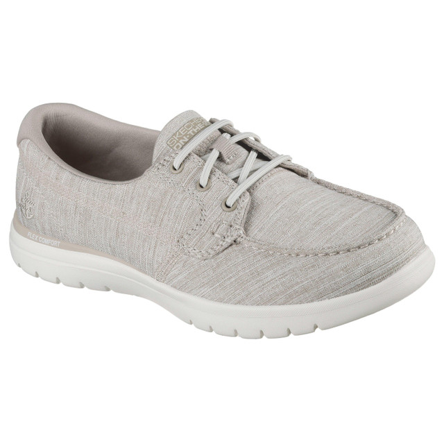 Iconic design and premium materials fuse with innovative Skechers Performance technology to achieve the ultimate in comfort and style. Skechers On-the-GO Flex - Ashore has a colorful heathered finish soft linen fabric upper in a casual boat shoe design with a Skechers Air-Cooled Goga Mat insole and lightweight ULTRA GO cushioning.
