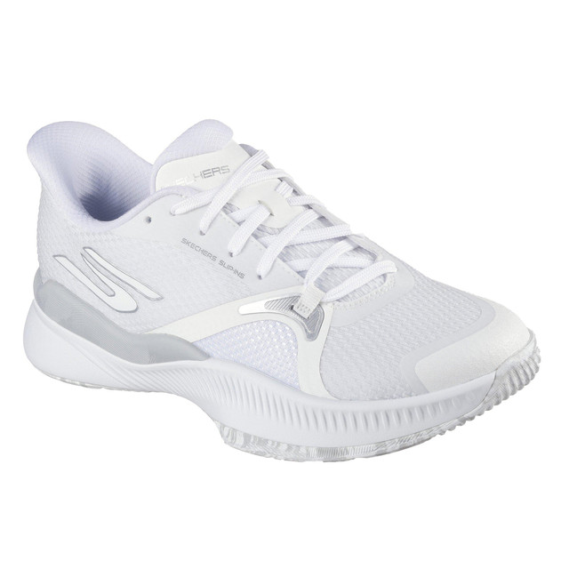 Experience lightweight comfort on the court wearing Skechers Hands Free Slip-ins: Tennis State Champ. Designed with our exclusive Heel Pillow, this mixed media tennis slip-on features a breathable mesh and synthetic overlay upper with a reinforced toe front for durability during overhead serves and volleys. A Move Foam insole, ULTRA GO midsole, and Goodyear Gold compound outsole round out the design, with the latter built for increased wear resistance-allowing the player to perform.