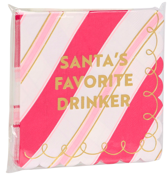 This 20-pack of Christmas cocktail napkins features festive stripes and a humorous foil-accented script, adding a playful touch to your holiday table. Napkins measure 5 in x 5 in.